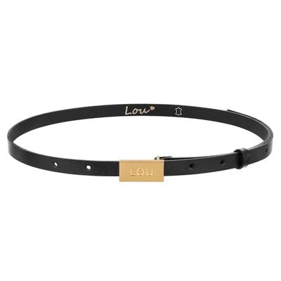 Pasek Charo - Czarny pasek skórzany z luksusową złotą klamrą i wygrawerowanym logo Lou