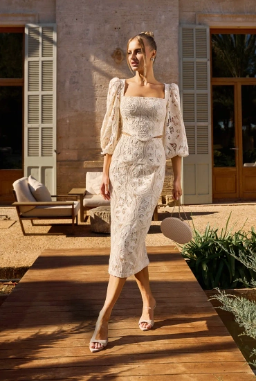 Leona - sukienka midi z subtelnie elastycznej tkaniny z wytłoczeniami