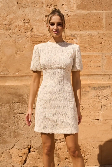 Manola - kremowa sukienka midi z ażurowej bawełny