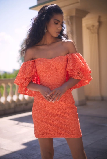 Mallorie - Elegancka mini sukienka z asymetrycznym dekoltem i srebrnymi dżetami