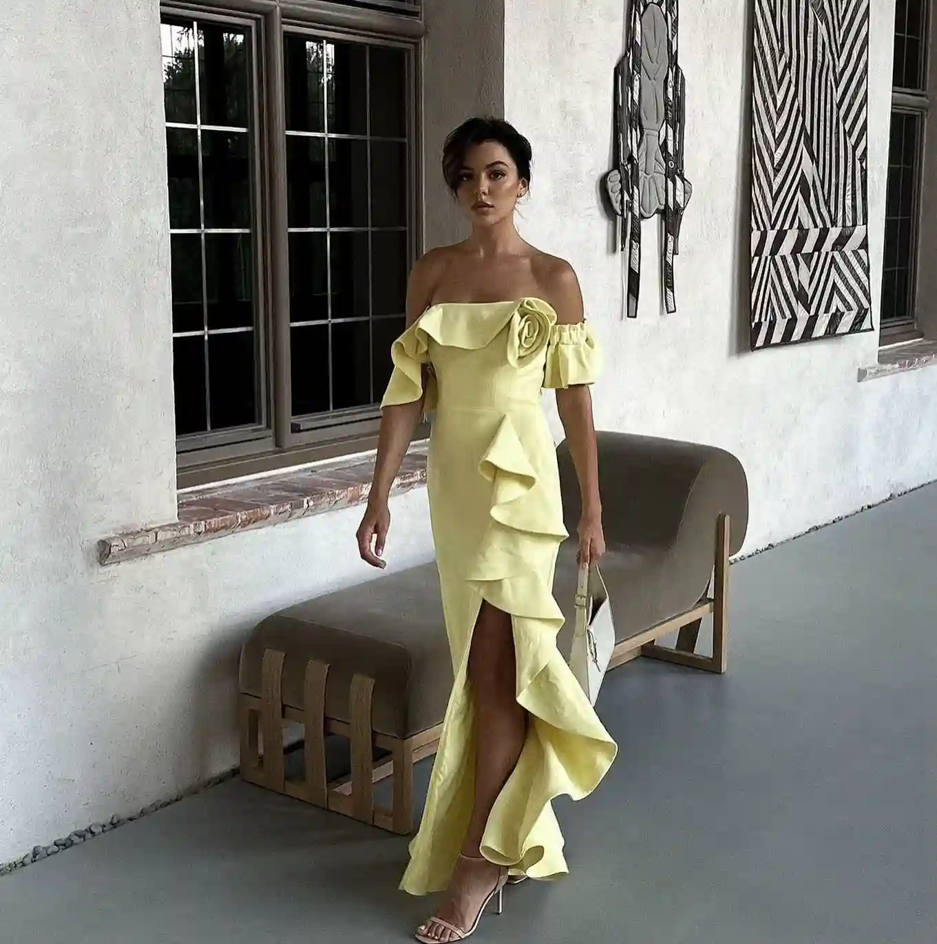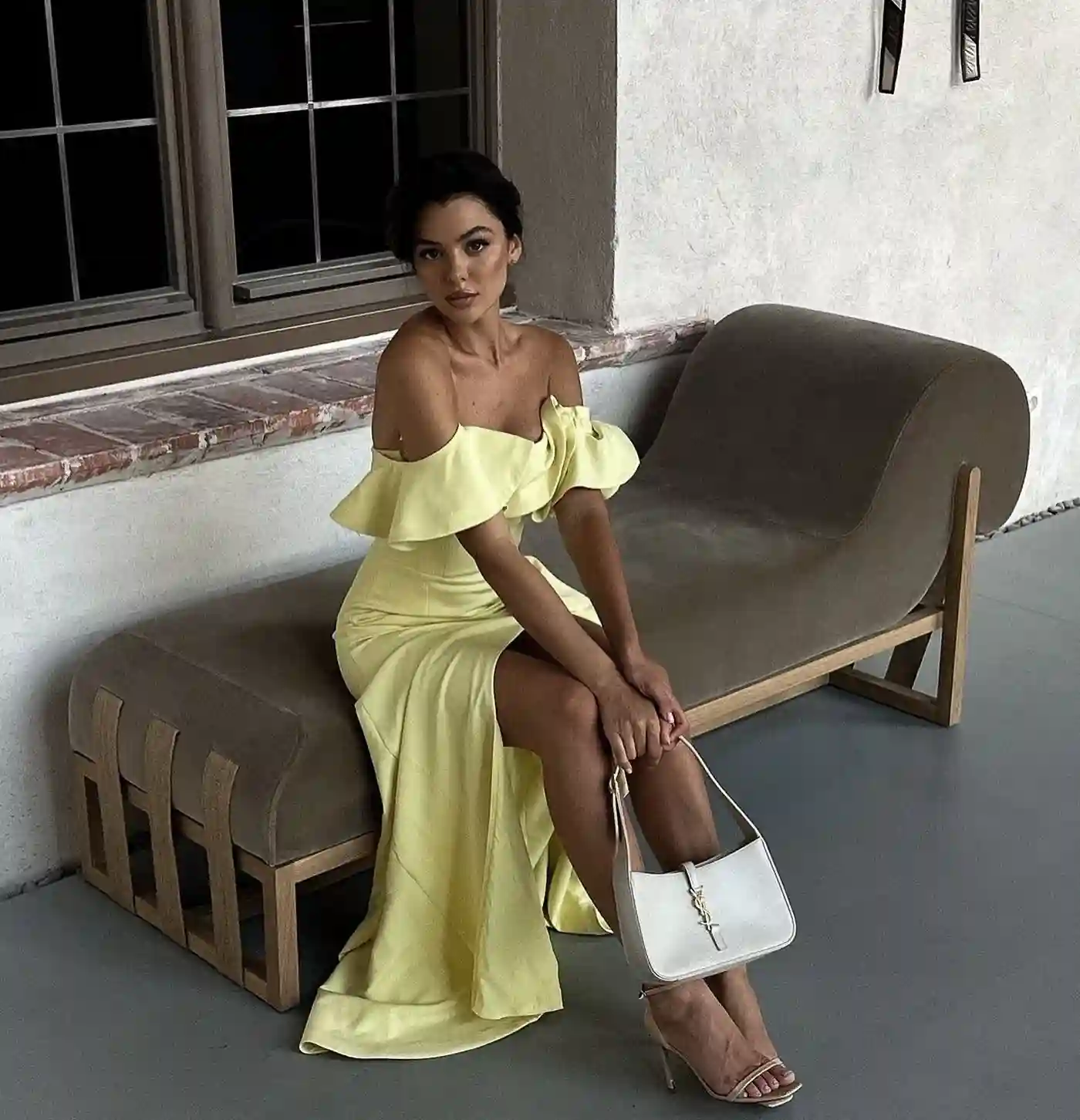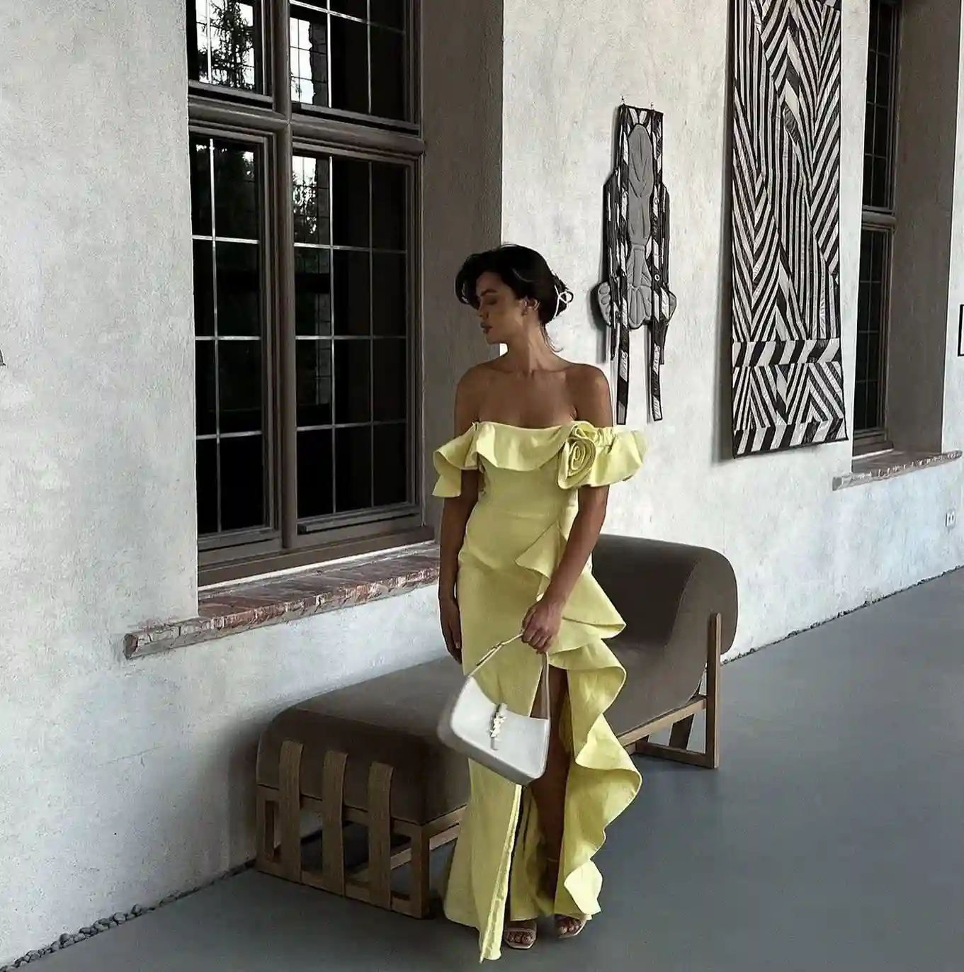 Odkryj luksusową sukienkę maxi z gorsetem na fiszbinach, asymetrycznym krojem i efektownymi falbanami. Elegancki rozporek i odpinane ramiączka dodają klasy. Idealna na specjalne okazje.