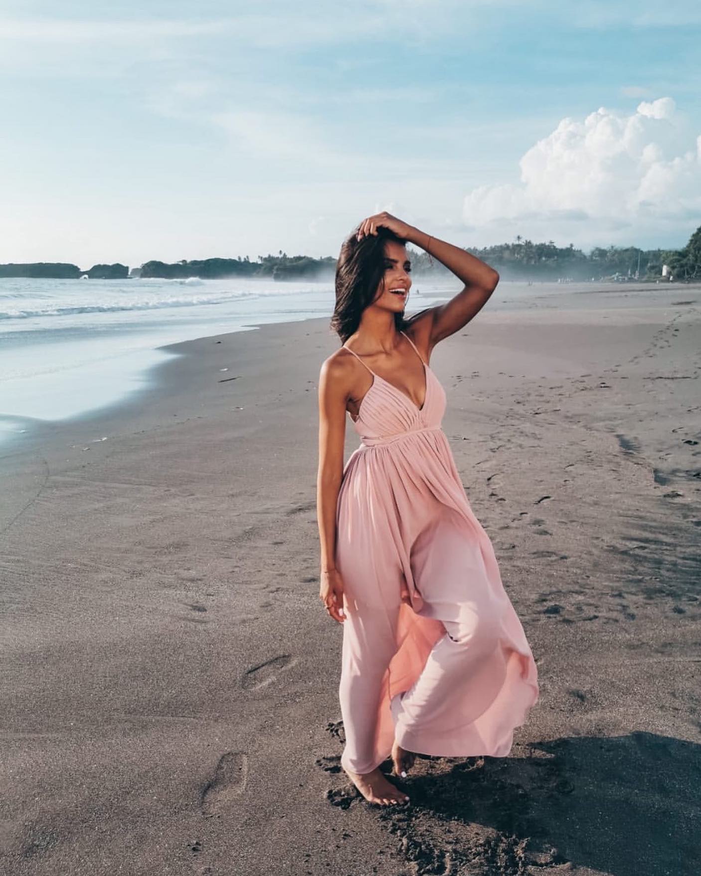 Szukasz sukni na bal, wesele, a może Sylwestra? Mamy dla Ciebie doskonałą propozycję - LOU Diffa. Model ten możesz idealnie dopasować do swojej sylwetki. Zaprojektowano wyjątkowe wiązanie, które krzyżuje się na plecach. Cały tył jest wyeksponowany. Tak więc jest to kreacja dla odważnych kobiet, które nie boją się wyrażać prawdziwej siebie. Długa różowa suknia Diffa jest wykonana z bardzo zwiewnego materiału. Rozcięcie na nodze sprawia, że poczujesz się w niej komfortowo, nie będzie ograniczała żadnego Twojego ruchu. Do sukni dobierz delikatne dodatki w odcieniach pudrowego różu. Świetnie sprawdza się sandały na szpilce nude, które wyeksponują piękne, długie nogi. Poczuj się naprawdę wyjątkowo!