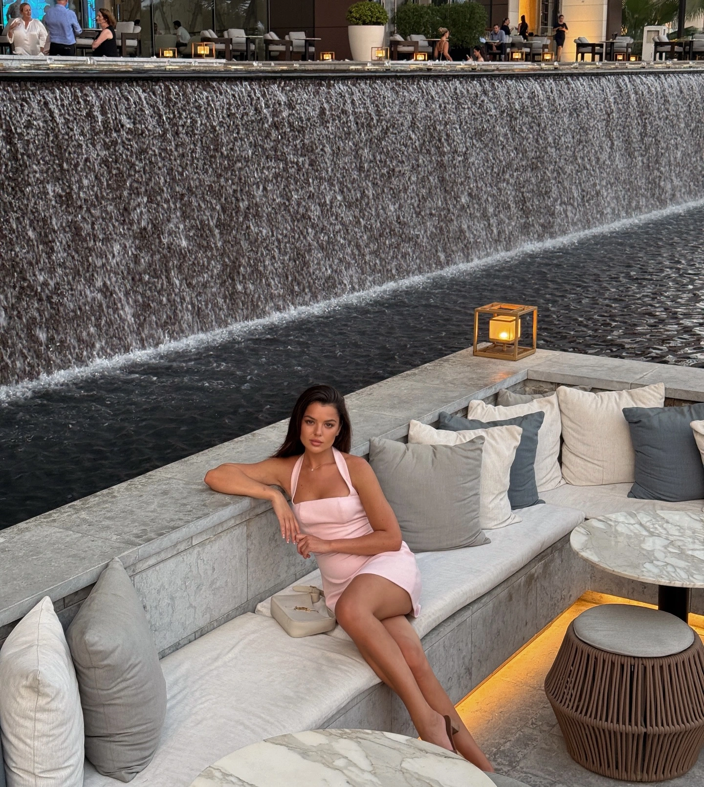 Hasita - różowa sukienka mini z wiązaniem na szyi