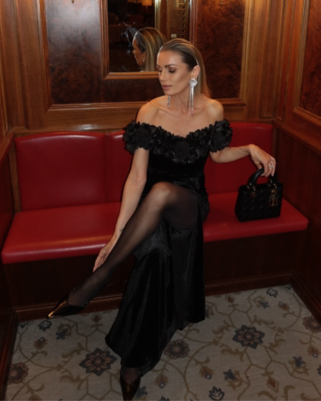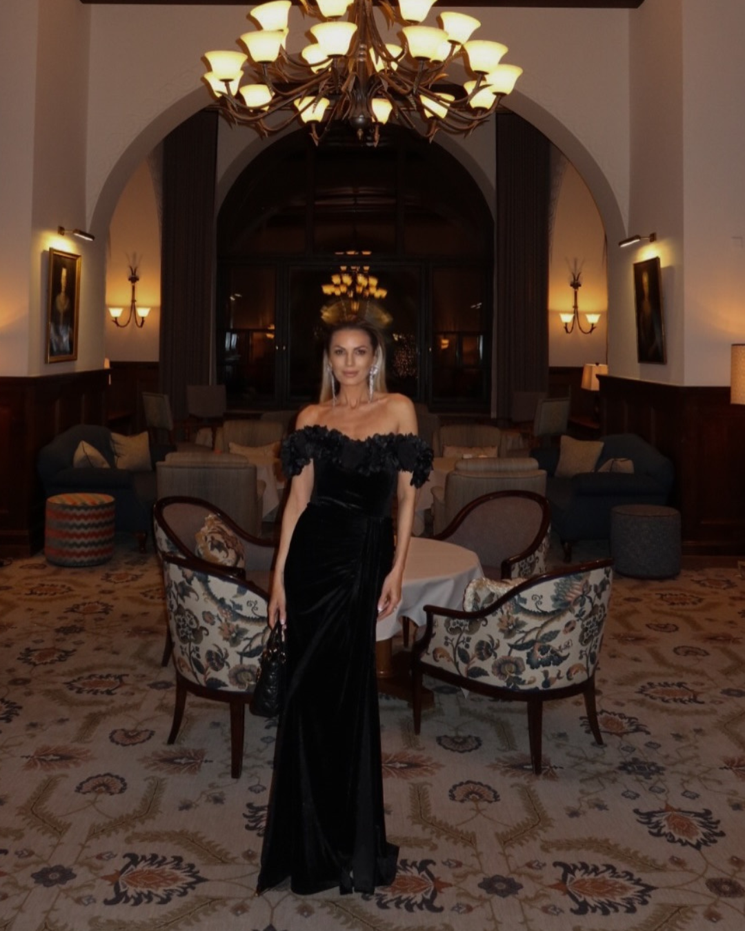 Klaudia - czarna sukienka maxi z kwiatowym zdobieniem
