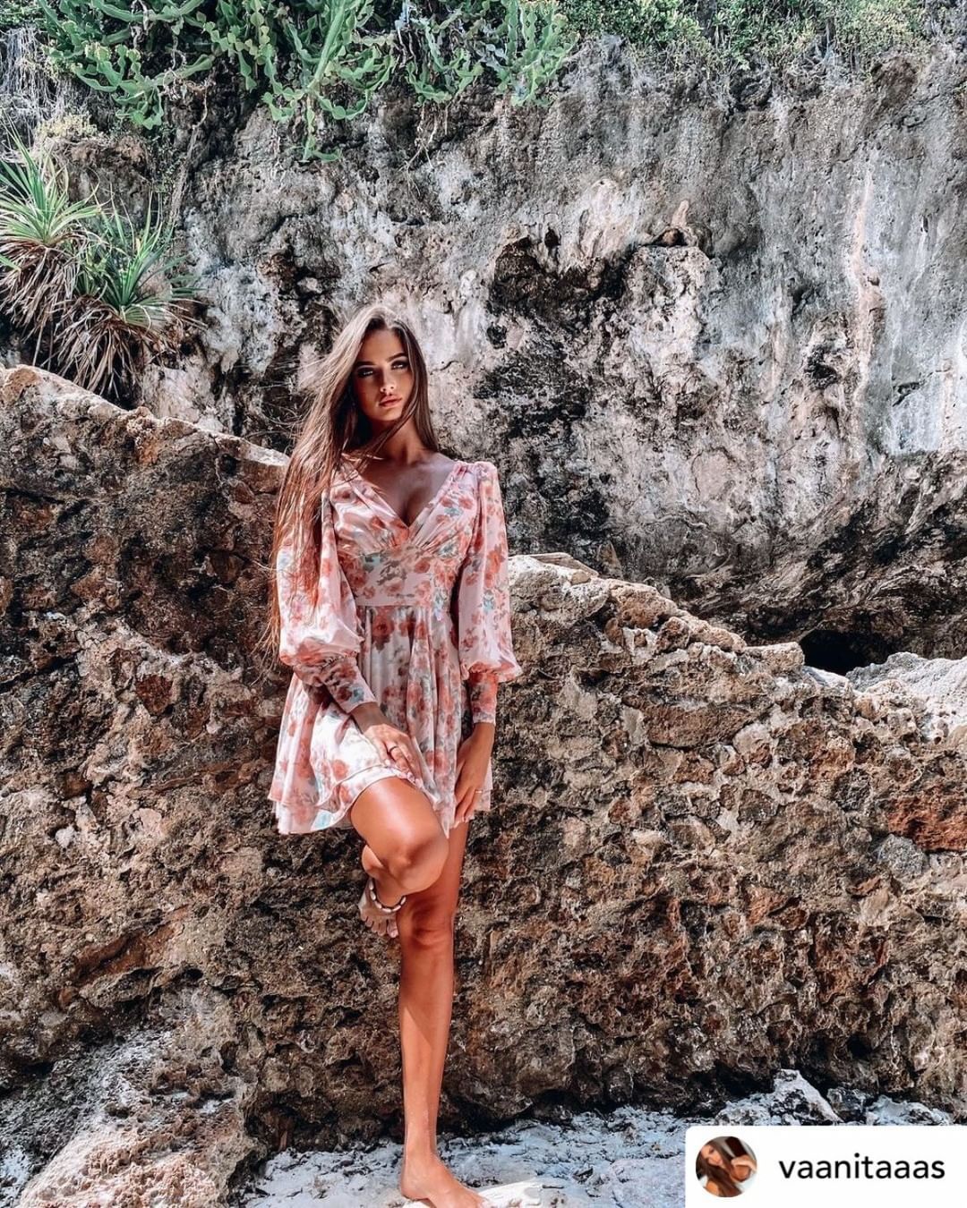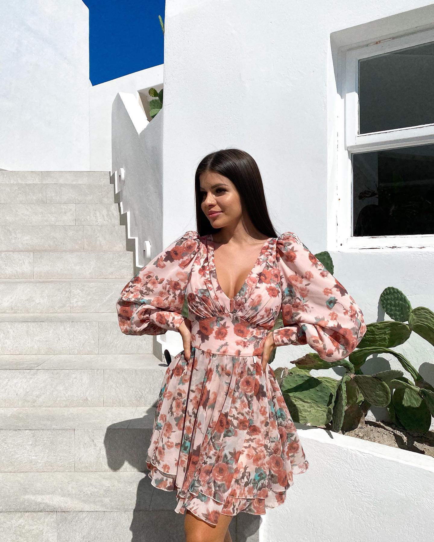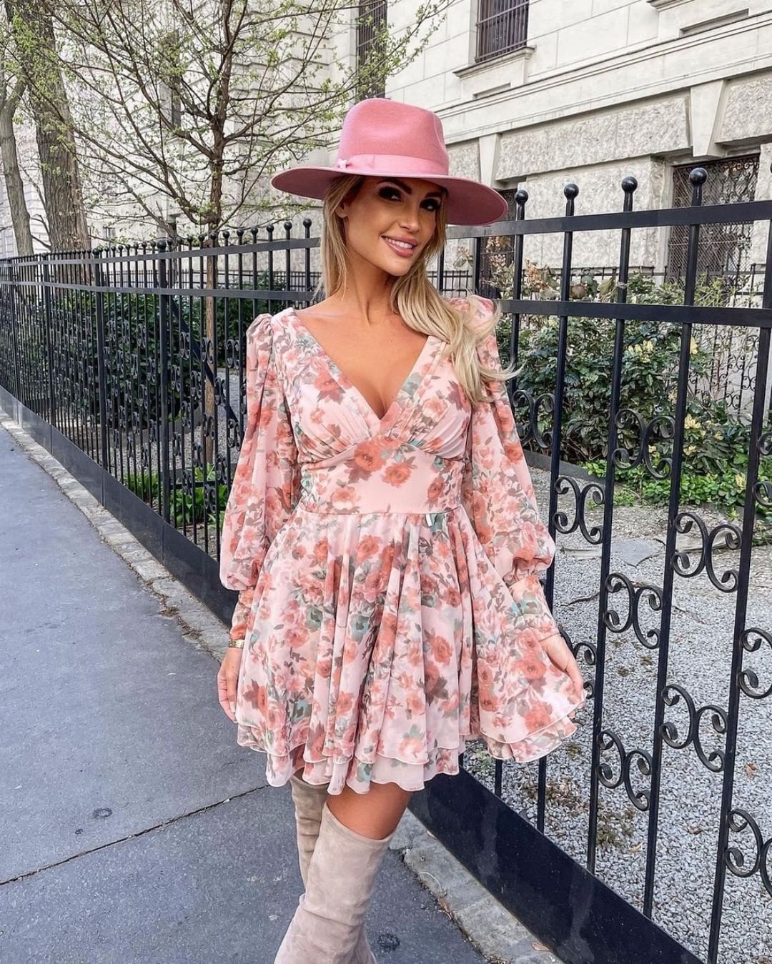 Urocza sukienka kwiatowa na tle przydymionego różu. Ten niezwykły kształt tworzą bufiaste rękawy zakończone mankietami, głęboki dekolt "V" i wersja długości mini pokazująca nogi. Sukienka Laila to ta część garderoby, która powinna zaskoczyć Twoją szafę. Zadowolenie z udanego zakupu poczujesz wtedy, gdy współtowarzysze spotkań towarzyskich będą podziwiać jak się prezentujesz. Do tego outfitu dobierz ciekawe dodatki niezbyt krzykliwe. A może wersja maxi w kwiatowe printy bardziej Cię oczaruje... Zerknij na sukienki wieczorowe i imprezowe .InstagramZobacz tę stylizację na Instagramie