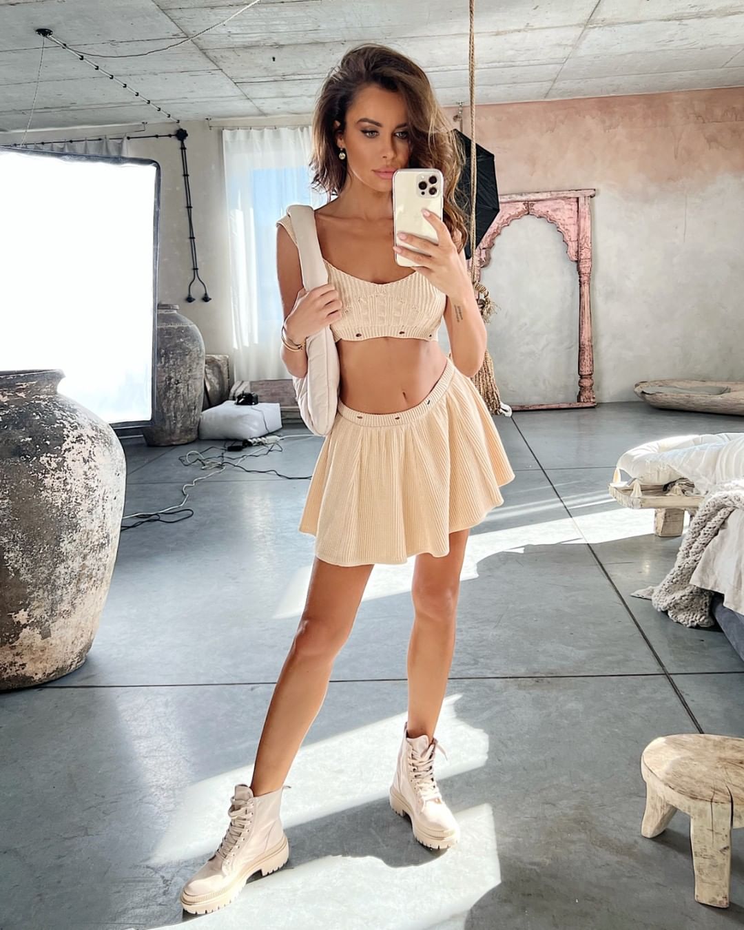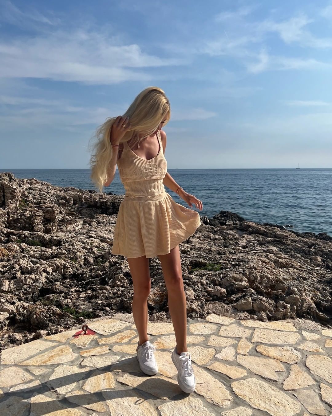 Lori Beżowa - dzianinowa sukienka na ramiączkach