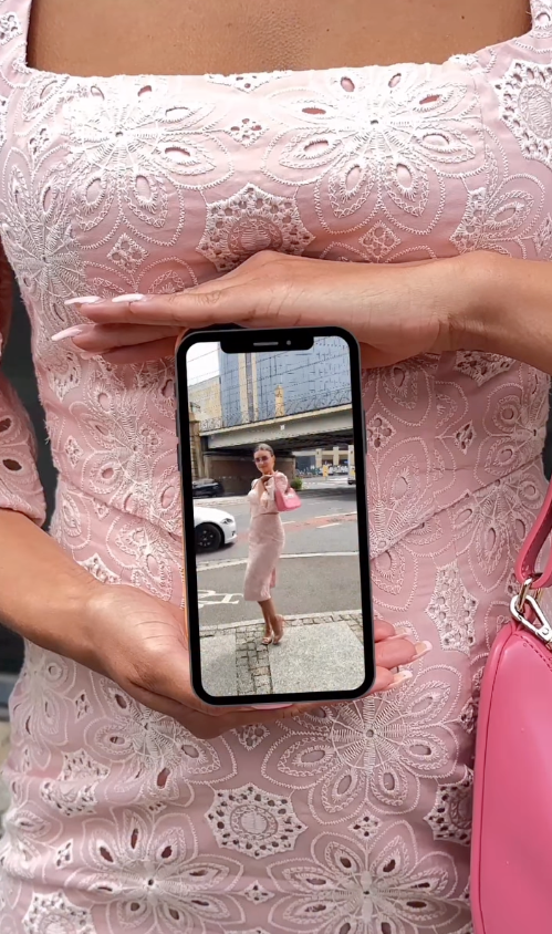 Sukienka midi z tkaniny ażurowej z bawełny. Całość podszyta podszewką z wiskozy. W dole rękawa gumka. Sukienka zapinana na zamek.
