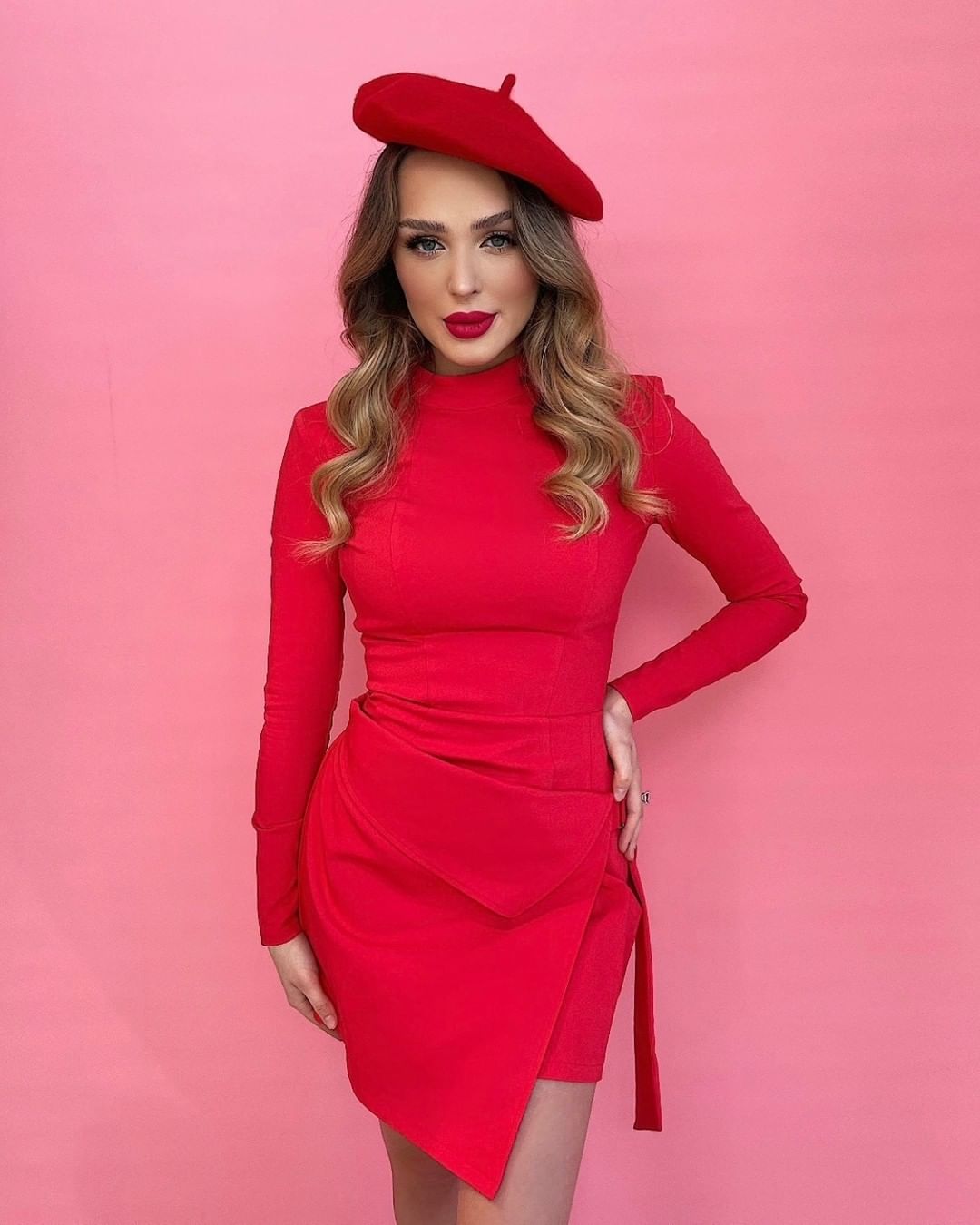 Kreacja koktajlowa w soczystym kolorze - dlaczego nie? Melanie to wzór, który sprawdzi się idealnie, zarówno na imprezie, jak i w codziennej stylizacji. Ta czerwona sukienka z baskinką została uszyta tak, by zapewnić Ci jak największą wygodę. Jeśli lubisz dopasowane kroje, sprawdź ją koniecznie!