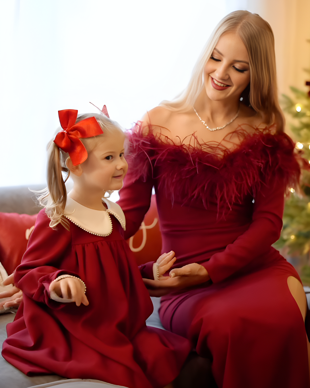Meryl - bordowa sukienka z ozdobnymi piórami