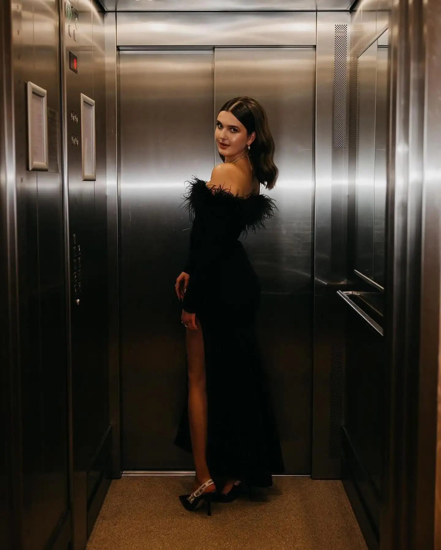 Ta sukienka jest idealna na sylwestra, walentynki, romantyczną randkę, studniówkę, urodziny czy eleganckie wesele. Rozporek na lewej nodze dodaje jej lekkości, a długi rękaw i dekolt w stylu hiszpańskim przyciągają uwagę swoim unikalnym designem. Asymetryczne marszczenia na przodzie sukienki podkreślają elegancję, a gorsetowa góra z wszytymi fiszbinami zapewnia doskonałe wsparcie.