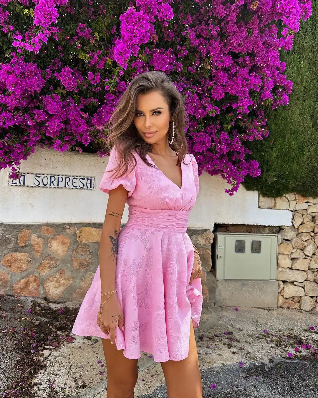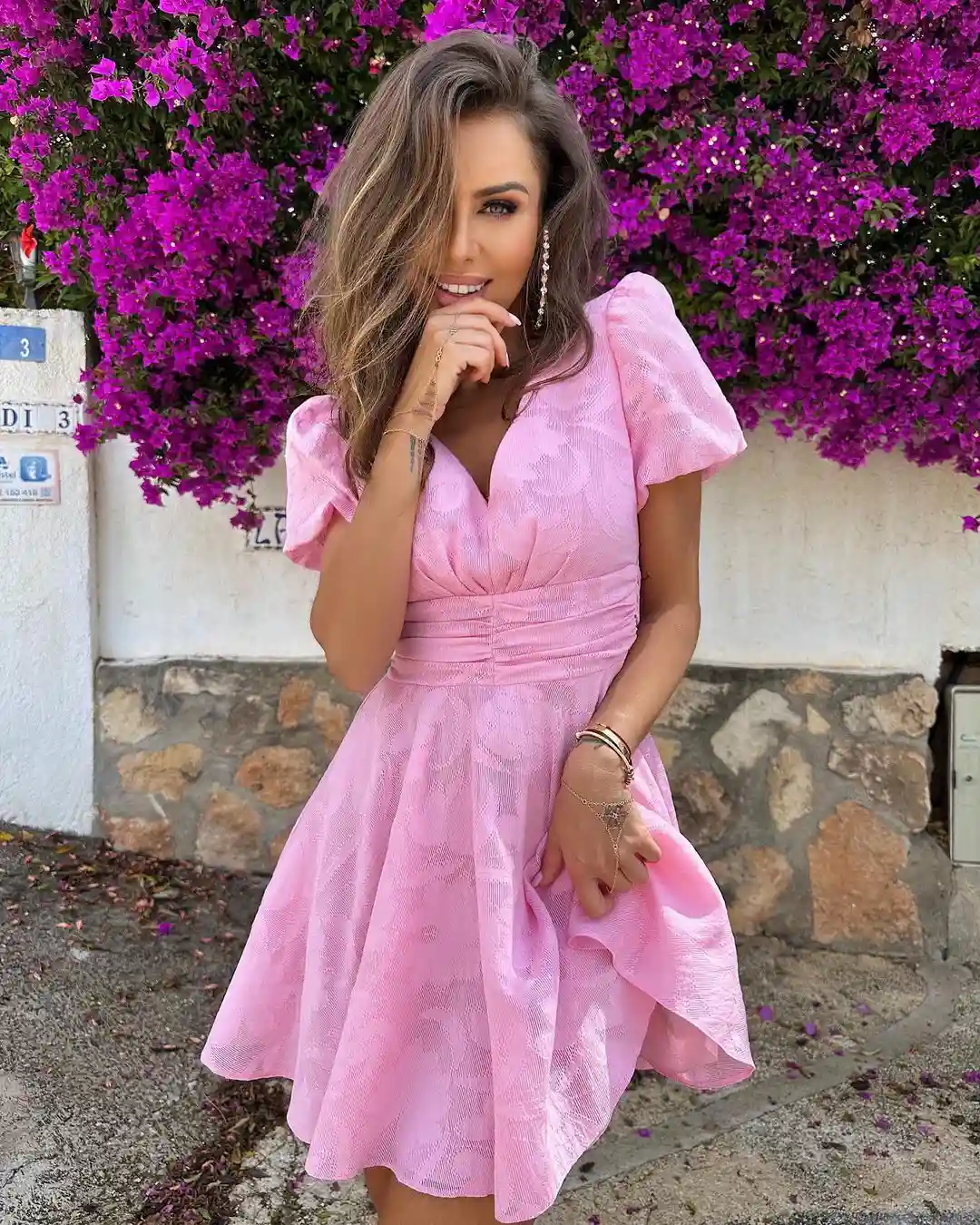 Ta wyjątkowa letnia mini koktajlowa sukienka w kolorze pudrowego różu to doskonały wybór na różne okazje, takie jak walentynki, romantyczne randki, komunie czy chrzest. Jej rozkloszowany dół, krótkie rękawy i ozdobne marszczenia w talii nadają jej subtelności i elegancji, podkreślając kobiecą sylwetkę. Wykonana z oddychającego, półprzezroczystego materiału, Nilda zapewnia nie tylko wygodę w ciepłe letnie dni, ale także podkreśla Twoją naturalną urodę. Jej wyjątkowy wzór, wytłaczany na tkaninie, dodaje jej niepowtarzalnego charakteru i przyciąga uwagę. Zapinana na dyskretny zamek błyskawiczny, sukienka jest łatwa do założenia i zdejmowania. Jej delikatność i lekkość sprawią, że będziesz czuć się wyjątkowo i pięknie na każdym kroku. Dodając subtelny urok i elegancję Twoim letnim stylizacjom, stanie się niezastąpionym elementem Twojej garderoby. Wybierając sukienkę Nilda możesz być pewna, że wyróżnisz się spośród tłumu i zyskasz wiele komplementów. Jej uniwersalny design i doskonałe dopasowanie sprawiają, że jest idealna zarówno dla romantycznych dusz, jak i osób ceniących modową świeżość. Niezależnie od okazji będzie Twoim tajnym assem, dodającym uroku i elegancji Twojemu letniemu stylowi. Nie czekaj dłużej - wybierz tę mini koktajlową sukienkę w pudrowym różu i ciesz się wyjątkowym stylem, który przyciągnie uwagę i podkreśli Twoją kobiecą elegancję!InstagramZobacz tę stylizację na Instagramie