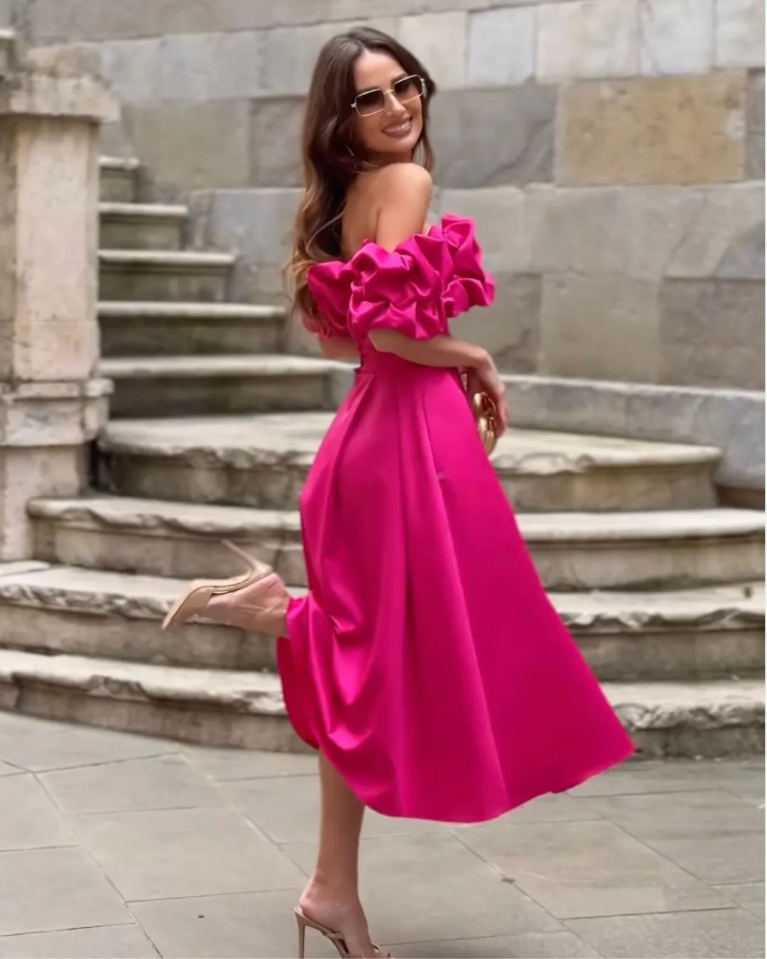 Odalis - fuksjowa midi z rozkloszowanym dołem