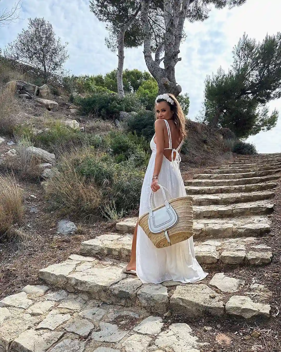 Ta biała sukienka maxi z regulowanymi naramkami i dekoltem w kształcie litery V to idealna propozycja na lato i plażę. Wykonana z naturalnej, oddychającej tkaniny, Ontario oferuje maksymalny komfort w gorące dni. Elastyczna talia podkreśla kobiecą sylwetkę, zapewniając jednocześnie swobodę ruchów. Sukienka wyróżnia się pięknym haftowanym wzorem kwiatowym, który nadaje jej wyjątkowego, boho charakteru. Wykonana z lekko przezroczystego materiału, subtelnie podkreśla Twoją kobiecość, a falujący materiał tworzy efektowny widok podczas spacerów plażą. Ta biała sukienka maxi to absolutny must-have w letniej garderobie. Doskonale sprawdzi się na plaży, podczas wakacyjnych podróży czy letnich wieczorów. Kombinacja stylu, wygody i lekkości sprawia, że jest to niezastąpiony element garderoby. Wybierz tę sukienkę, aby wyglądać urokliwie i czuć się komfortowo w gorące dni.Zostaw swoją opinięPodziel się swoją opinią z innymi