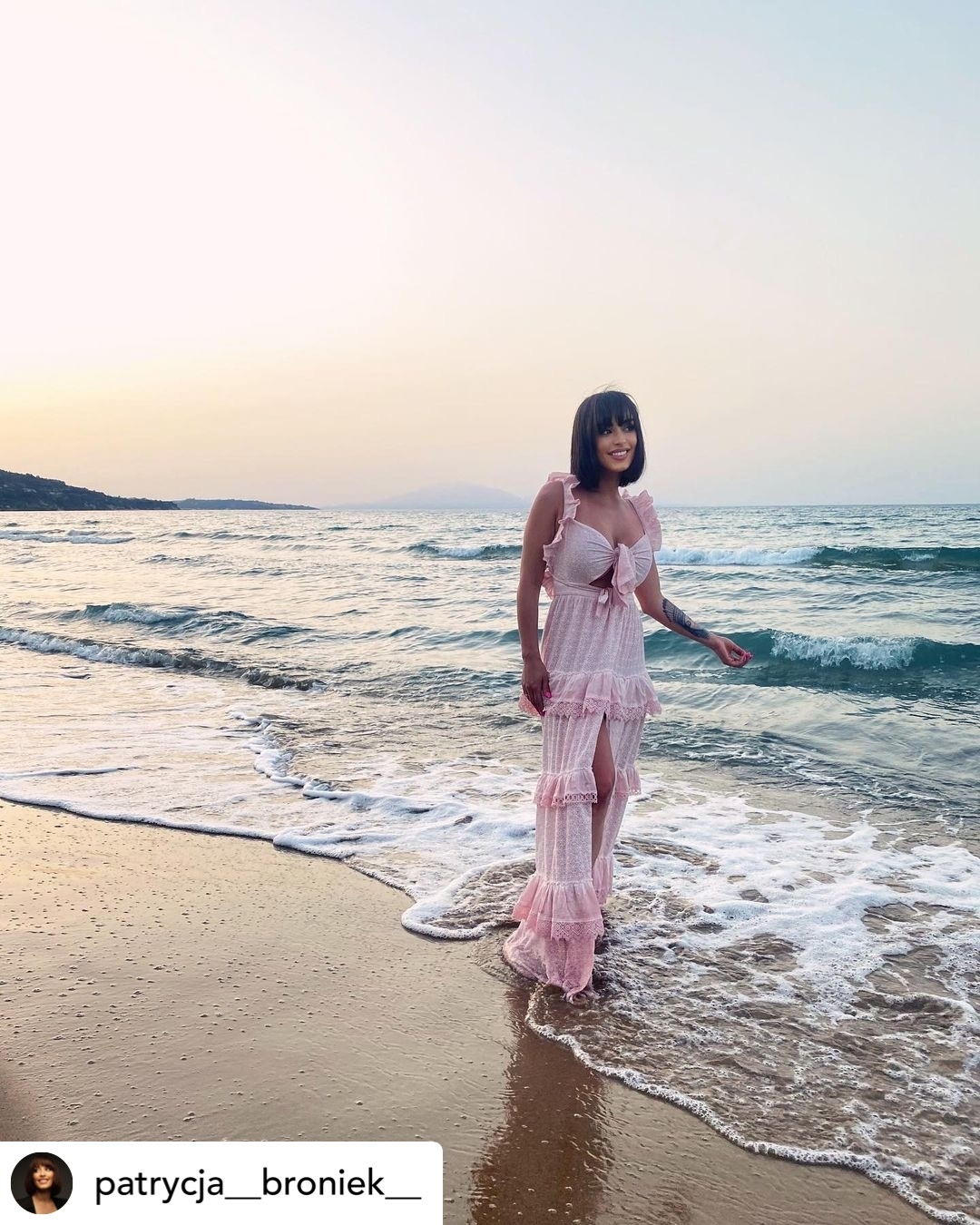 Bardzo romantyczna sukienka w maxi długości. Romantyzmu i lekkości dodaje odcień pudrowego, słodkiego różowego oraz drobiazgi nadające klimat. Sukienka Puerta bez wątpienia jest fantastycznym modelem. Frywolna góra z wiązaniem na biuście, odkryty brzuch i subtelna falbanka z wiązaniem na plecach tworzą niepowtarzalny nastrój artystyczny. Część dolna niewinnie eksponuje nogę. Ta kreacja została stworzona dla odważnych, wyzwolonych kobiet, które doskonale będą wiedziały, co jeszcze dołożyć, aby zachwycić ze zdwojoną siłą swoim wyglądem. Maxi długości zawsze są dostojne. Akcesorium zawsze w dobrym guście.InstagramZobacz tę stylizację na Instagramie