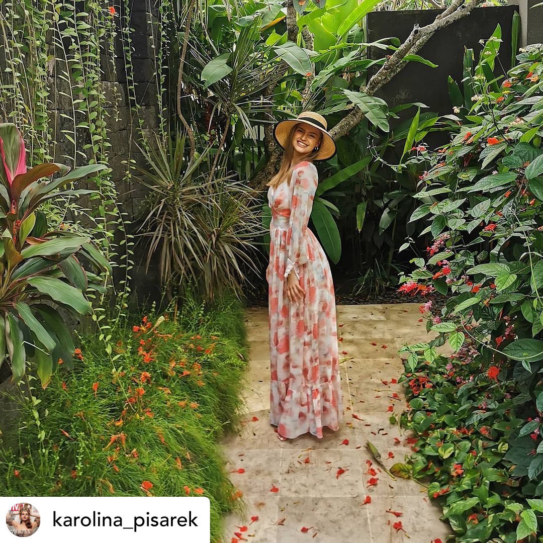 Sukienka w maxi długości z kwiatowym printem i wplecionym logowaniem. Przyjemna kolorystyka, lekka tkanina przyjaźnie wpływają na komfort noszenia. Sukienka Rosario pięknie oplata ciało podkreślając talię, eksponując dekolt i nogę. Długie rękawy zakończone są mankietami z uroczymi guzikami z tej samej tkaniny. Całą sukienkę w dolnej części wieńczy szeroka falbana. Taka maxi opcja świetnie sprawdzi się na zarówno na weselne tańcowanie, ale także na spacery, klimatyczne kolacje. W sklepie Lou więcej maxi sukienek czeka na Ciebie. Sukienki wieczorowe i imprezowe zachwycą Cię wraz z kolejnymi nowościami.InstagramZobacz tę stylizację na Instagramie