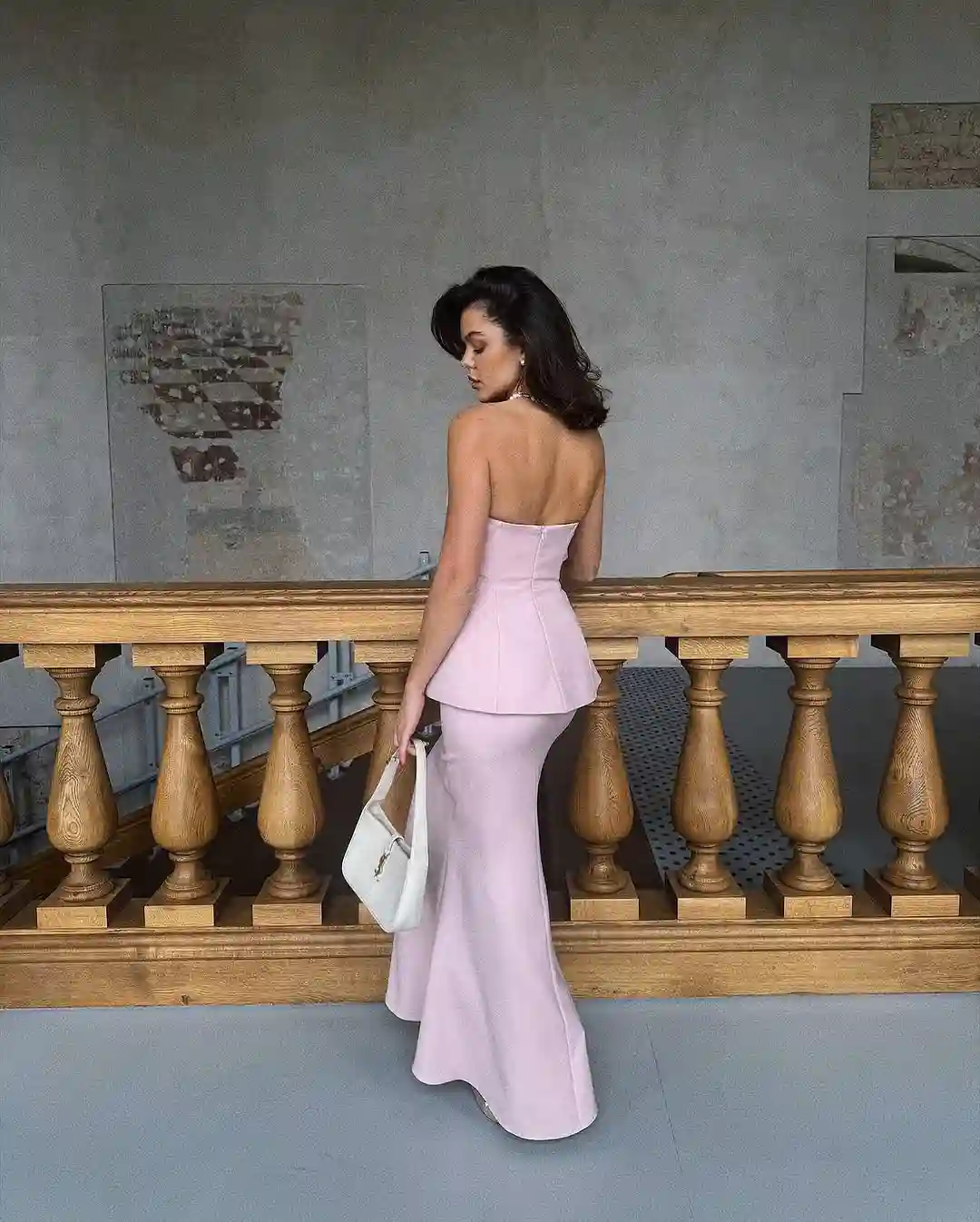 Rufina to elegancki komplet w odcieniu brudnego różu, łączący kobiecość z perfekcyjnym krojem. Komplet składa się ze spódnicy oraz gorsetu z domieszką wiskozy, co zapewnia komfort i luksusowy wygląd. Gorset z fiszbinami subtelnie modeluje sylwetkę, a gumka z haftkami gwarantuje podtrzymanie biustu. Regulowane, dopinane ramiączka oraz zamek umożliwiają idealne dopasowanie. Rufina to doskonały wybór dla kobiet, które cenią wyrafinowany styl i precyzję wykonania.